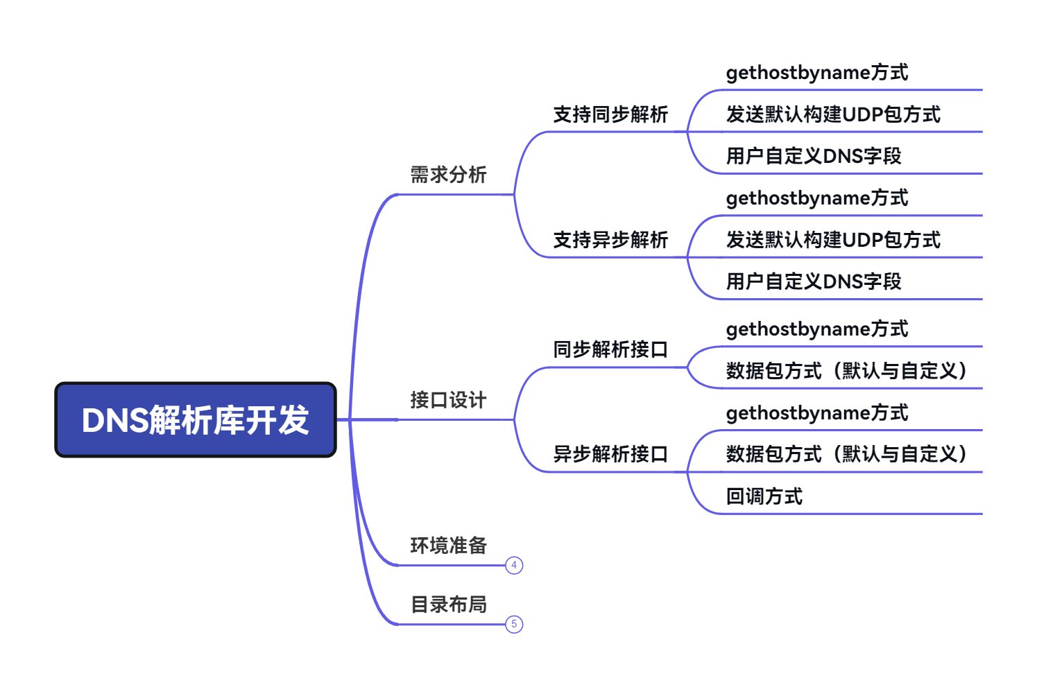 我要求这个库能从gethostbyname系统调用和在应用层构建DNS请求数据包发送的方式,解析DNS。我考虑到,有时候我们项目上可以直接使用较为简单的解析方式,即直接使用gethostbyname的方式,但是有时候又不希望解析过程在没有返回之前阻塞住我们的主应用,所以在进程资源满足的情况下可以适当使用异步解析,通过回调的方式回传解析好的ip地址。